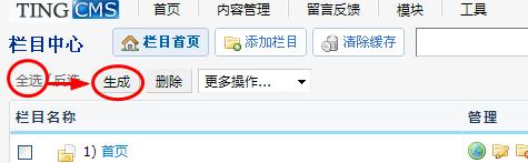 “欄目中心”,按照下面的圖示,先點全選,再點生成,刷新下你修改的那個欄目或文章就可以了,如果只是想見到修改后的某一篇文章或產(chǎn)品頁面有沒效果,修改完后,刷新下你的文章或產(chǎn)品頁就行,文章或產(chǎn)品頁在修改后就已經(jīng)自動生成了。